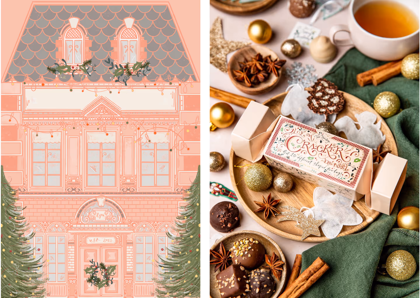 Christmas packaging illustrations and advent calendar designs for Tea Heritage, a Lyon based loose leaf Tea brand.