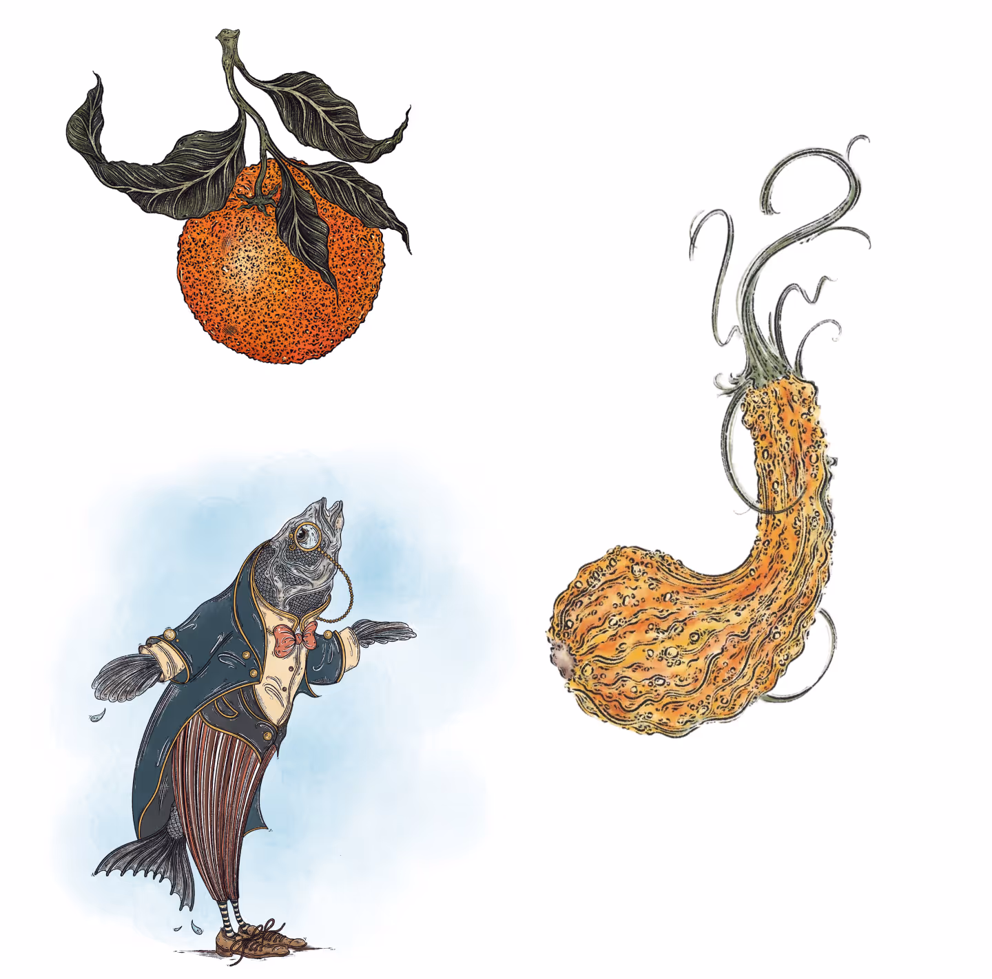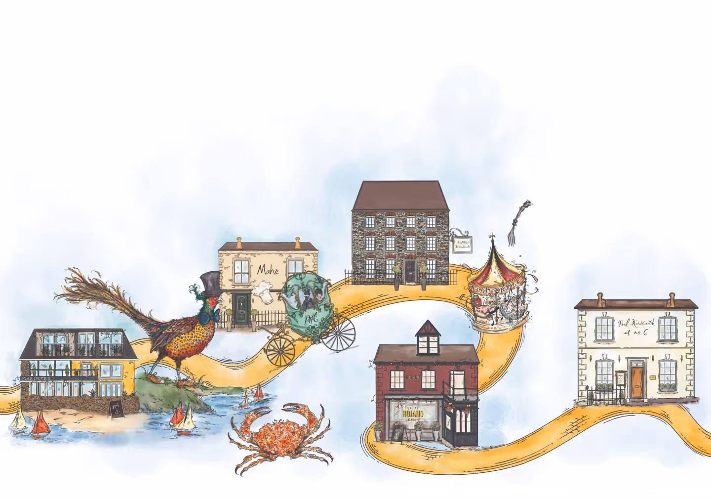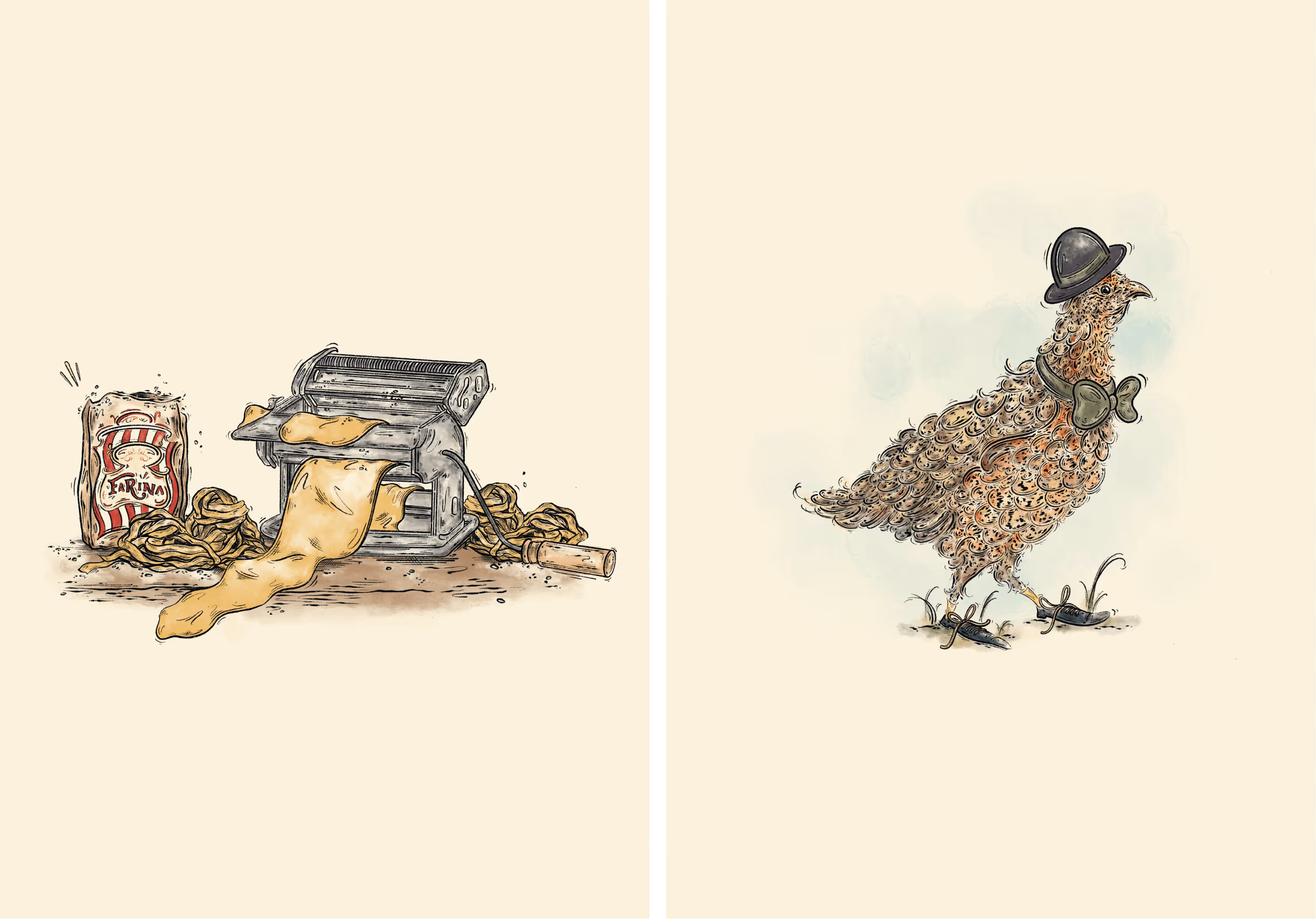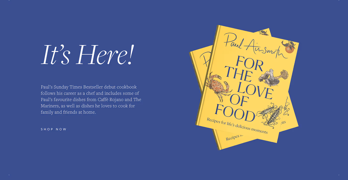 Cover and Internal food and playful anthropomorphic illustrations for Paul Ainsworth's Sunday Times Best Selling Cookbook, For the Love of Food, published by HarperCollins.
