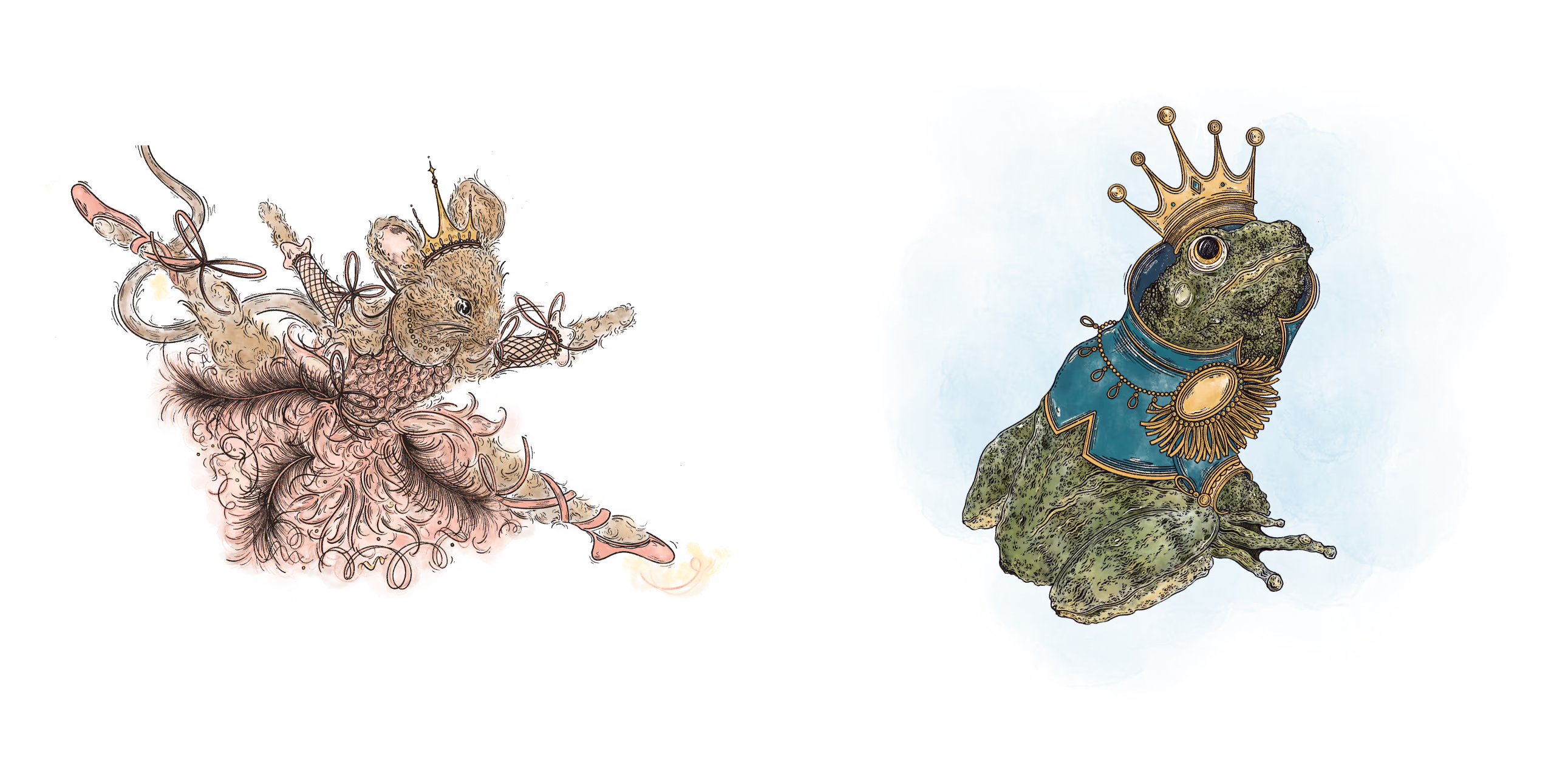 A series of anthropomorphic victorian style illustrations.