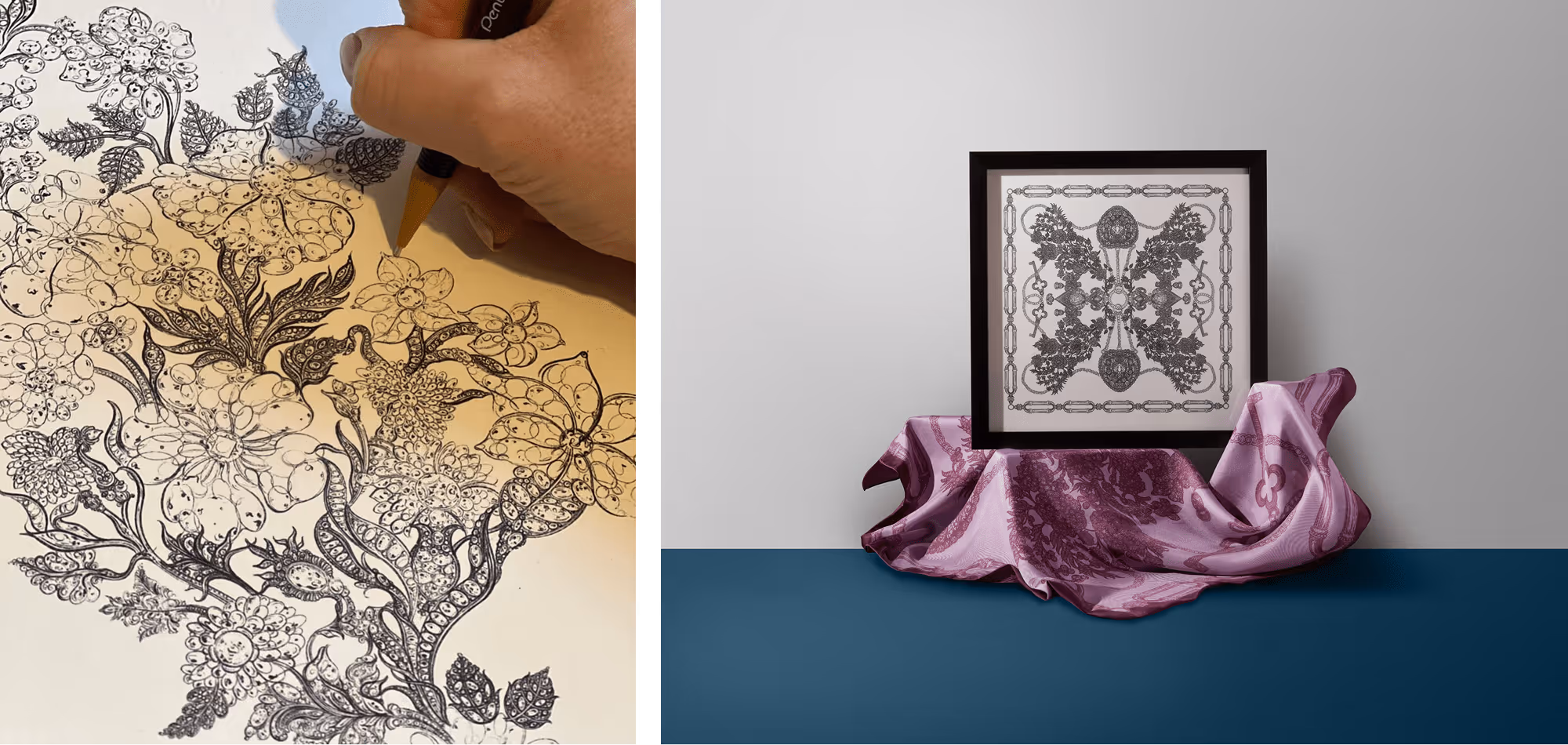 A series of intricate illustrations and a silk scarf pattern design featuring four pieces from the jewellery archives for an exclusive range of accessories, released alongside their Cartier exhibition in April 2025.